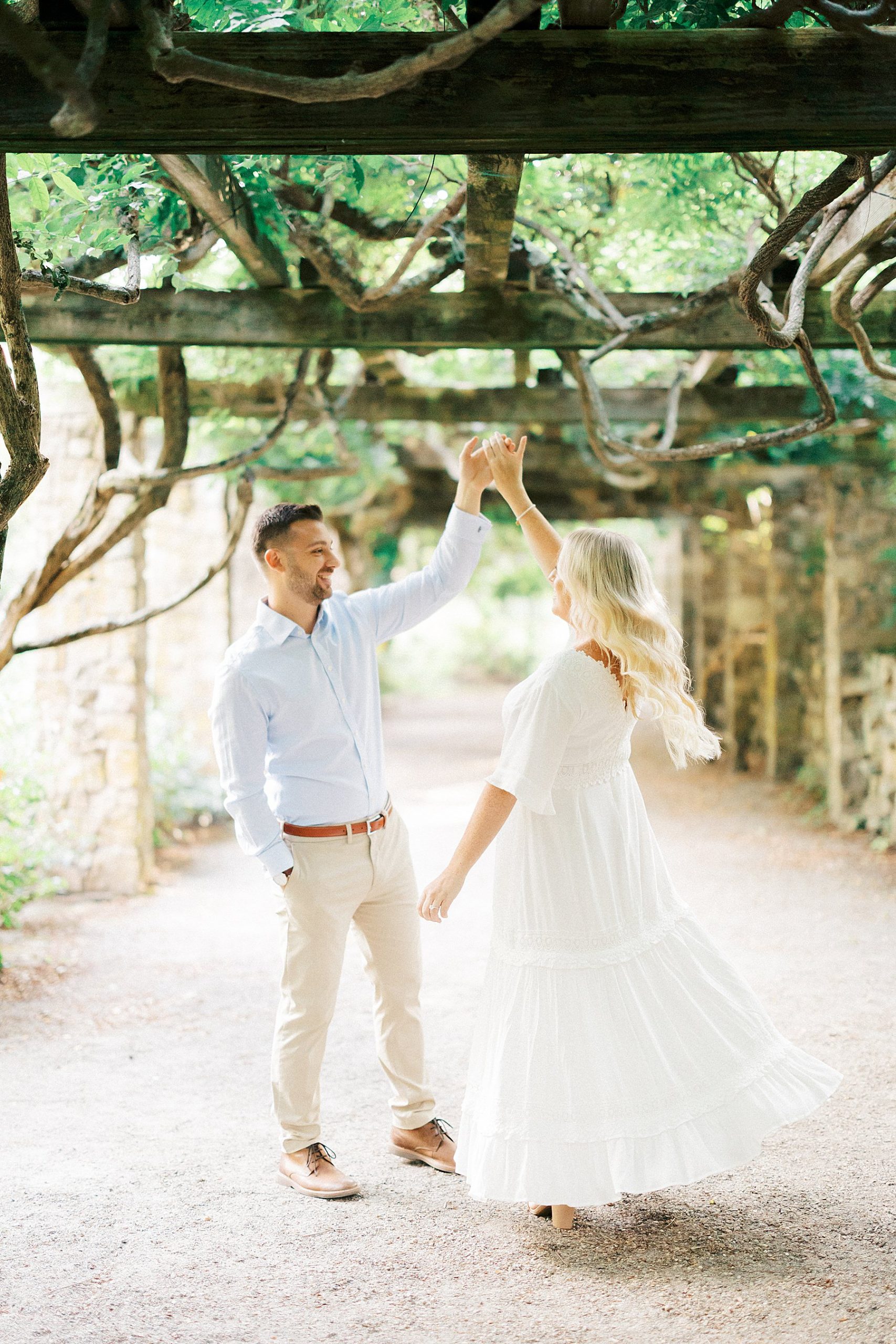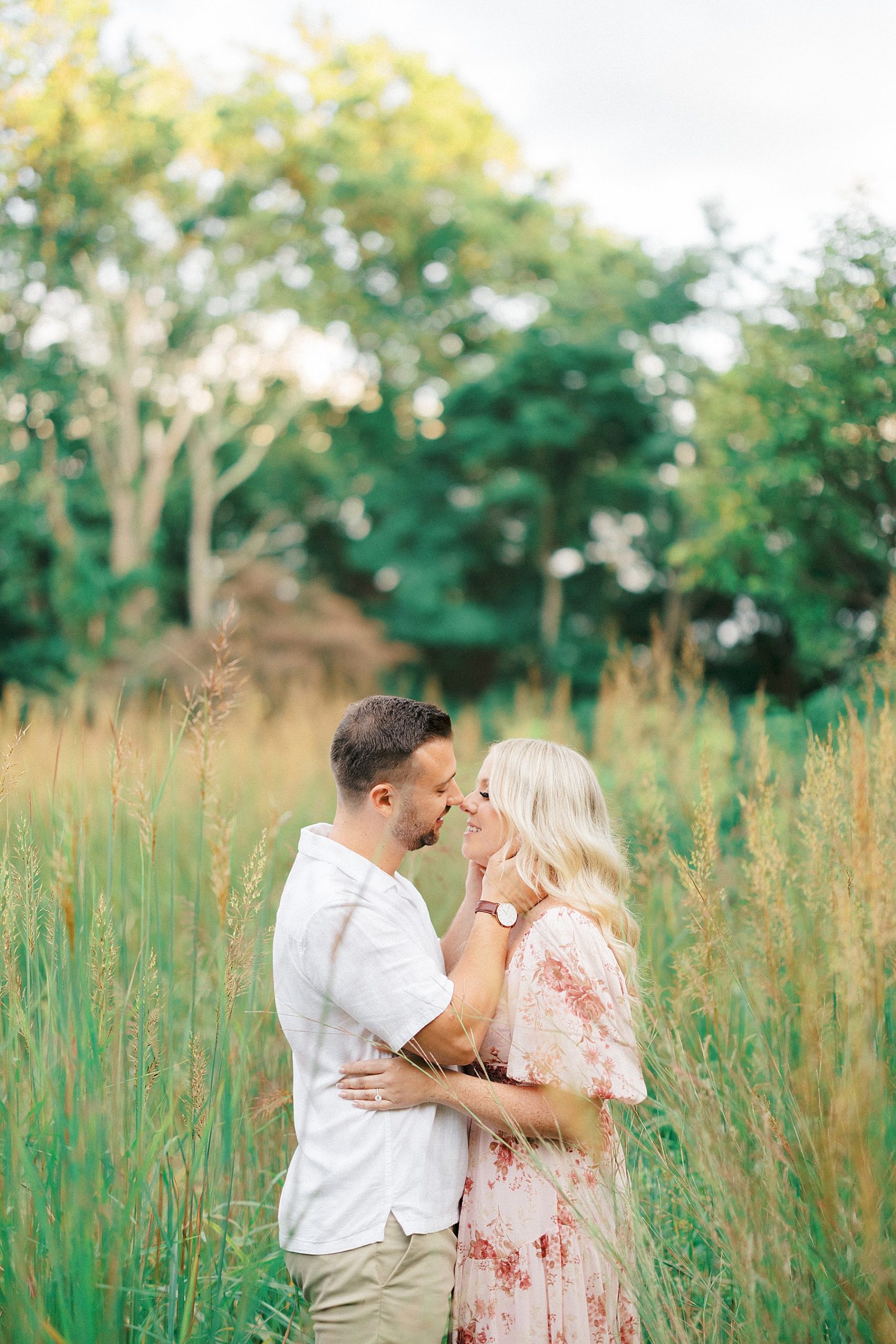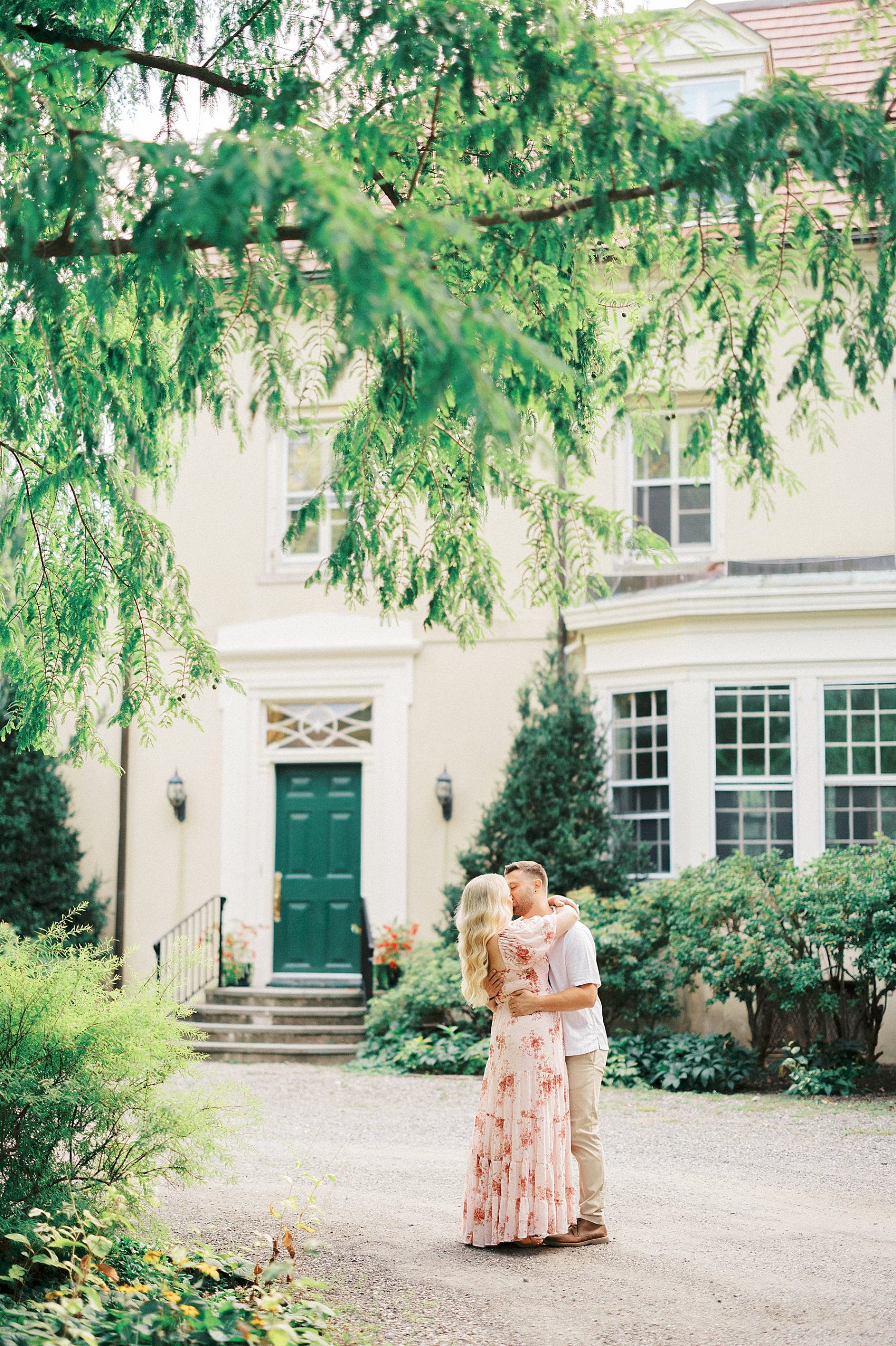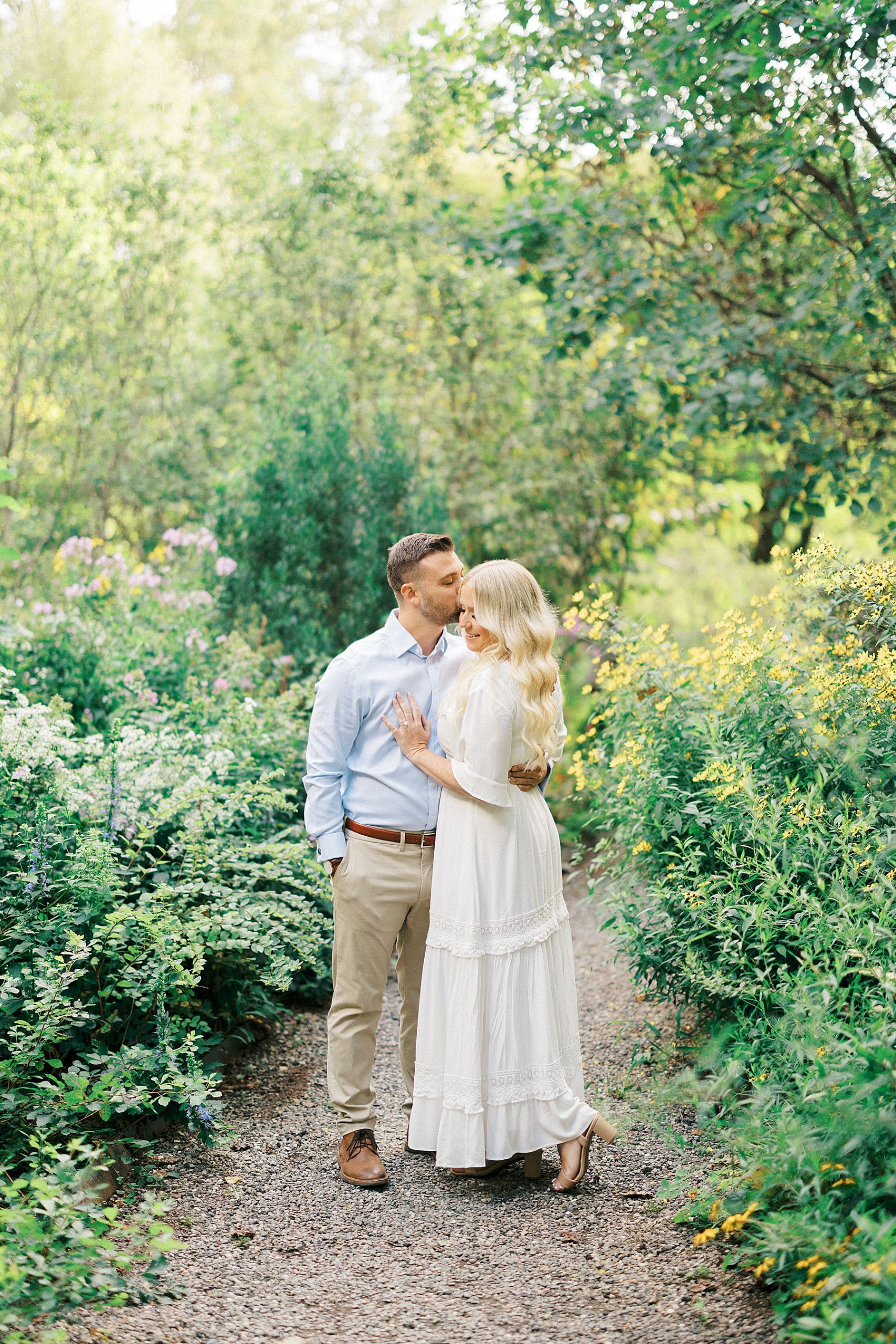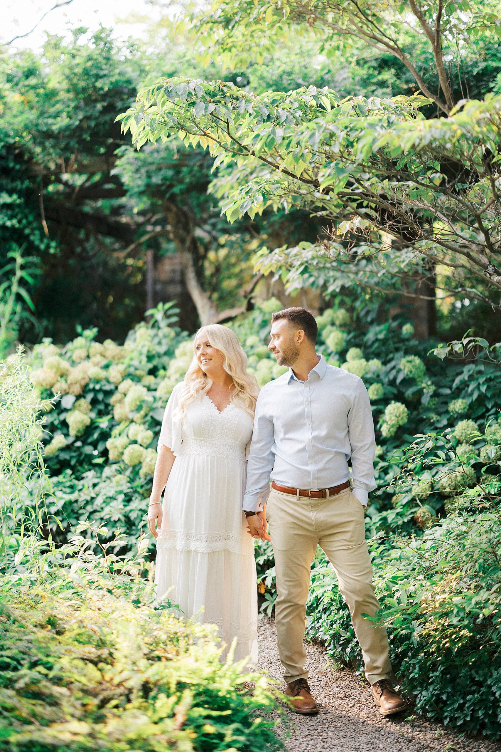 Samantha and Cameron’s engagement session at Cross Estate Gardens was full of late summer charm, the perfect setting for a couple whose story is all about timing, serendipity, and love that was meant to be.