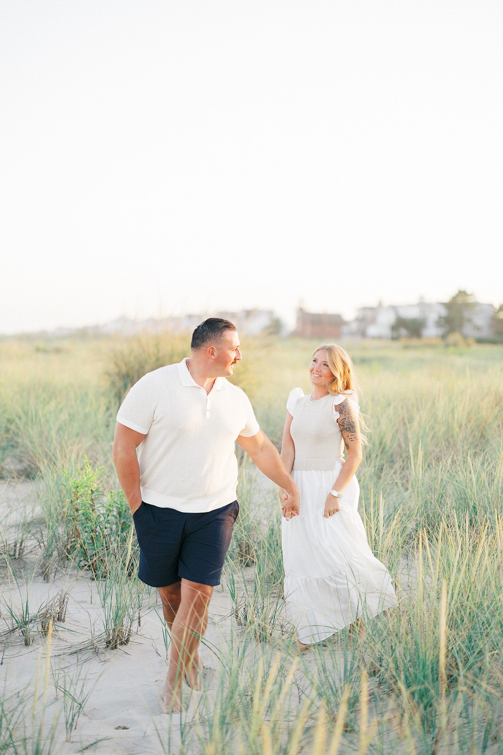 For their engagement session, the romantic bridges and willow trees of Divine Park, paired with the wide-open skies and sand of Spring Lake Beach, created a setting as heartfelt as their story. Together, Kelly and Nick love simple joys: martinis, family dinners on Sundays, early Saturday farmers market runs, and living each day in the moment. This session was the sweetest glimpse into the love and life they share.